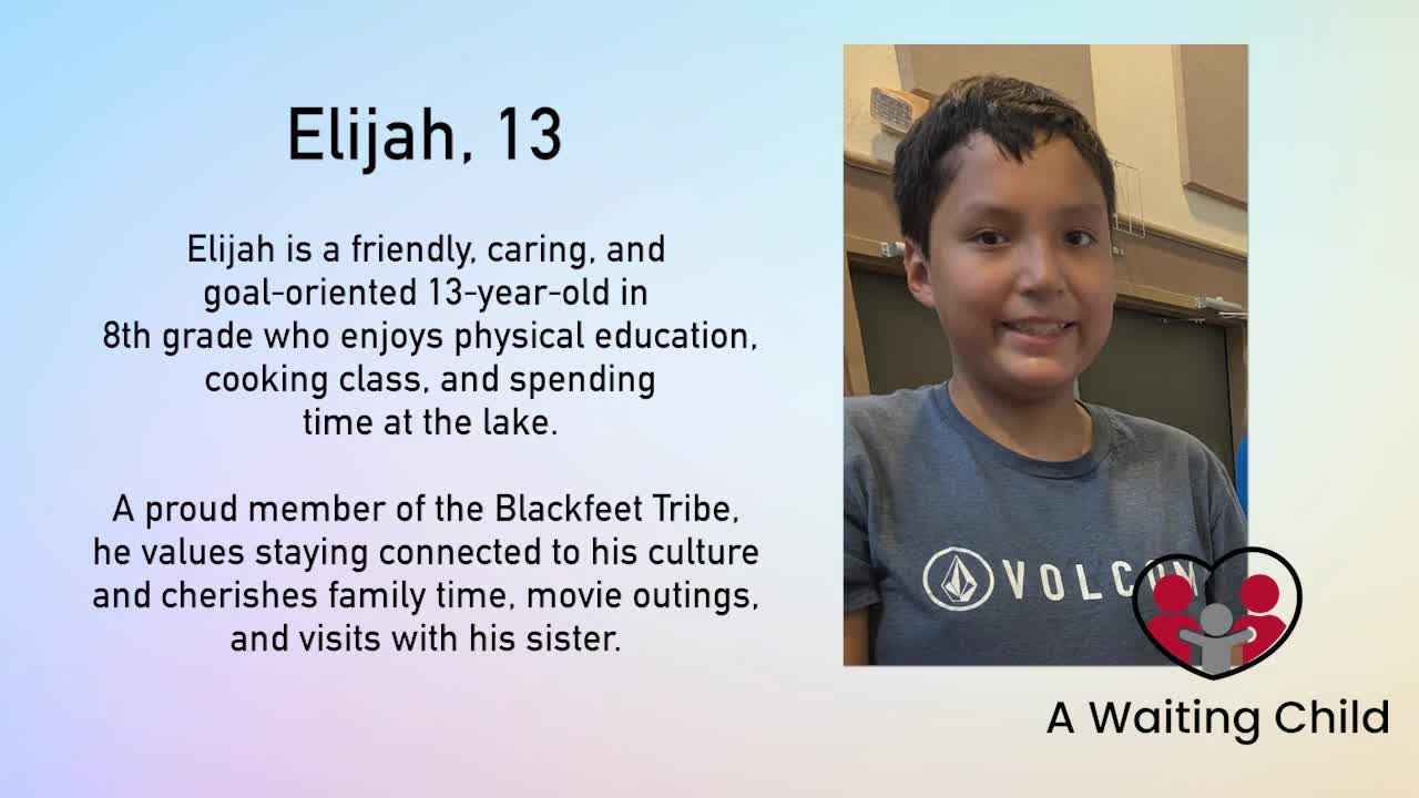 This month, meet Elijah—a friendly, caring, and goal‑oriented 13‑year‑old! Now in 8th grade, he’s enjoying physical education and cooking class.