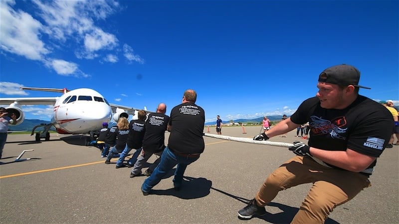 MISSOULA – Did you spend part of your weekend pushing a lawnmower? Pulling weeds? At least you didn’t have to pull an entire airplane, but it was all for a good cause.