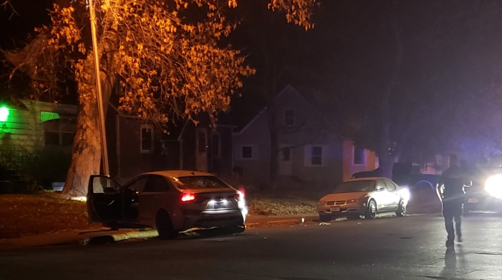 The suspect led all four agencies through the area before hitting a telephone pole and fleeing on foot. Officers confirmed the vehicle was stolen.