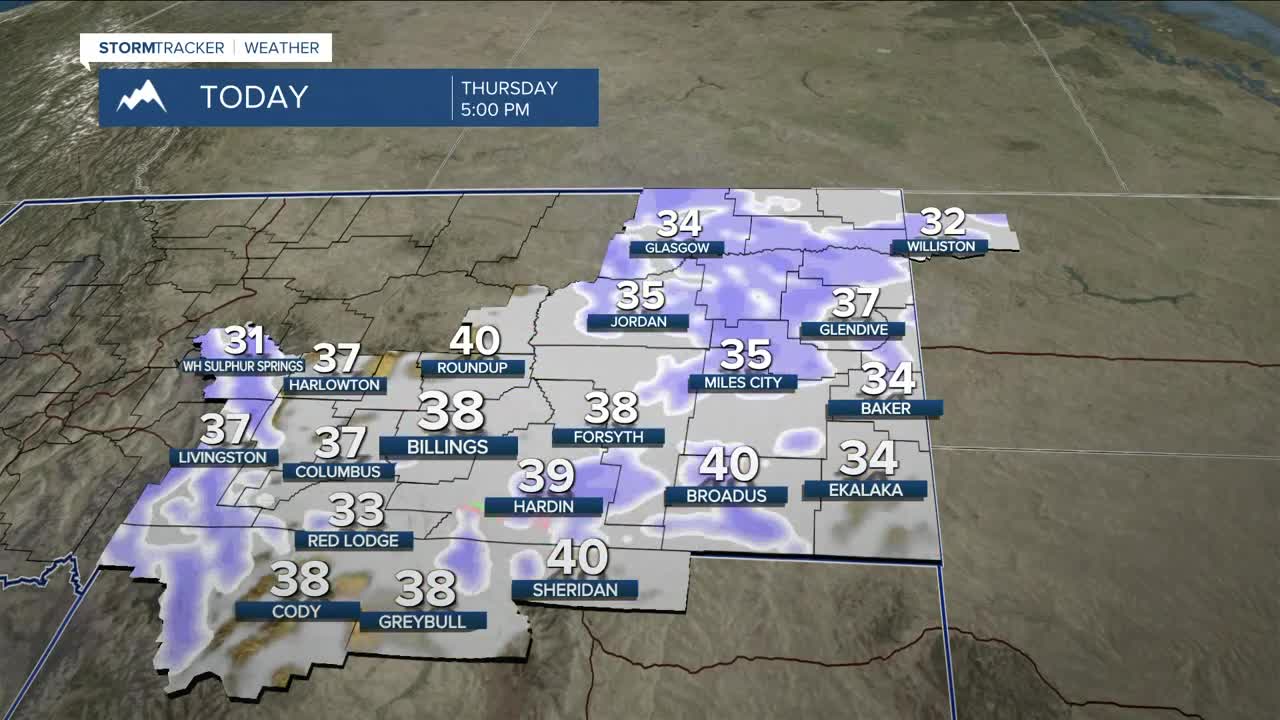 BILLINGS — It will be quite cloudy on Thursday with a chance of snow in the morning, especially east and south of Billings. Light rain and snow are expected in the afternoon before turning back to all snow during the evening. Outside of the mountains and higher hills, little to no accumulation is expected. Daytime highs will be mainly in the mid to upper 30s.