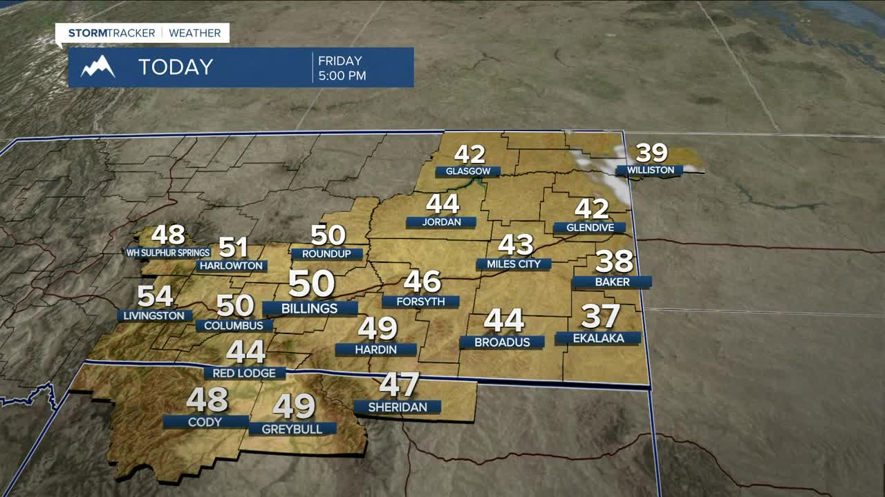 We'll enjoy lots of sunshine on Friday as daytime highs stay on the chilly side, with highs mainly in the mid‑40s to around 50°, although some locations in eastern to southeastern MT may not get out of the upper 30s.