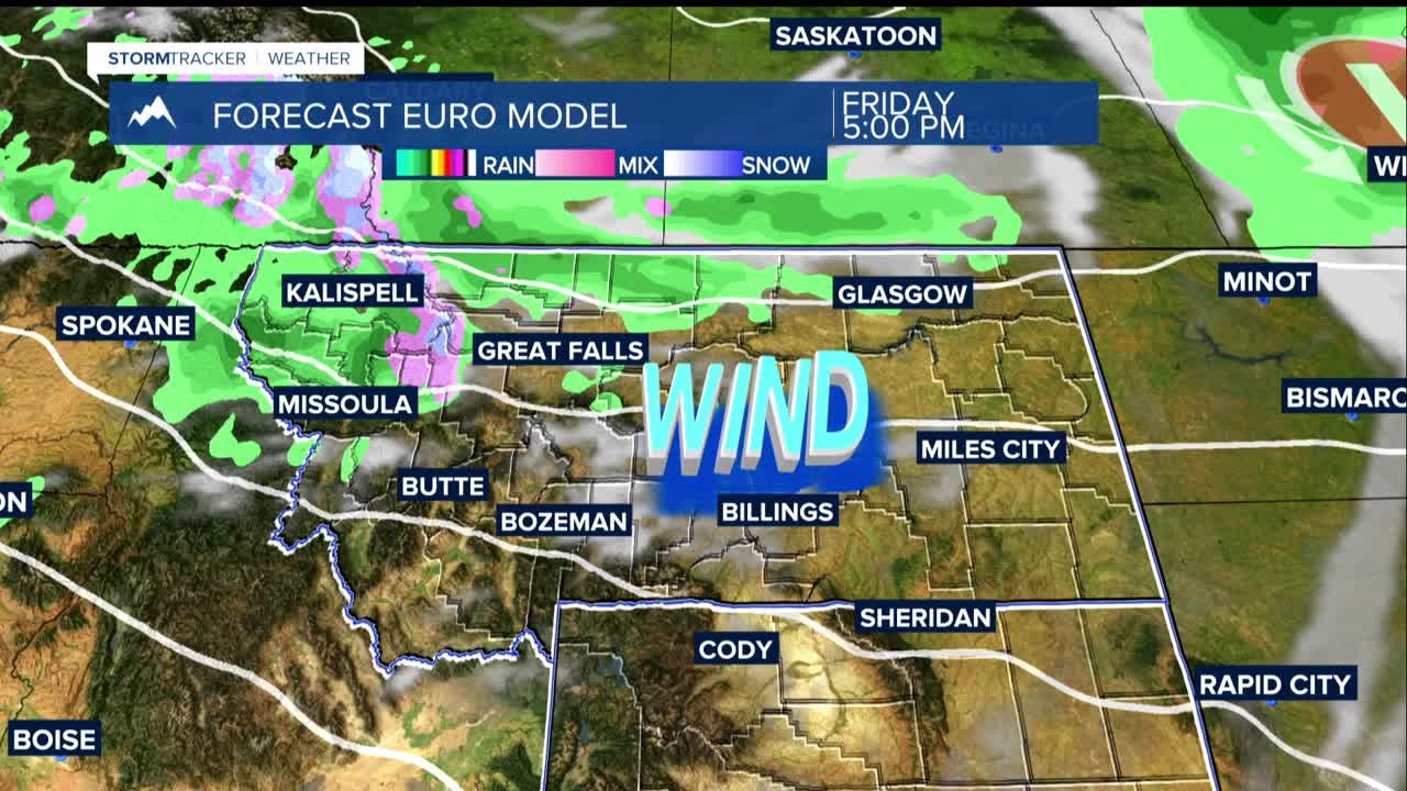 Friday: Brisk winds and slightly warmer temperatures in the mid-50s to lower 60s will highlight the day. Strong wind gusts exceeding 40 mph are likely, with the potential for 50 mph gusts in western foothills areas like Harlowton, Big Timber, and Livingston.