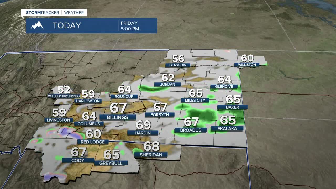 BILLINGS — A ridge is sliding east on Friday, allowing clouds to increase across the area. Downslope winds will still push temps well above normal, with highs in the mid-50s west to mid-60s east.