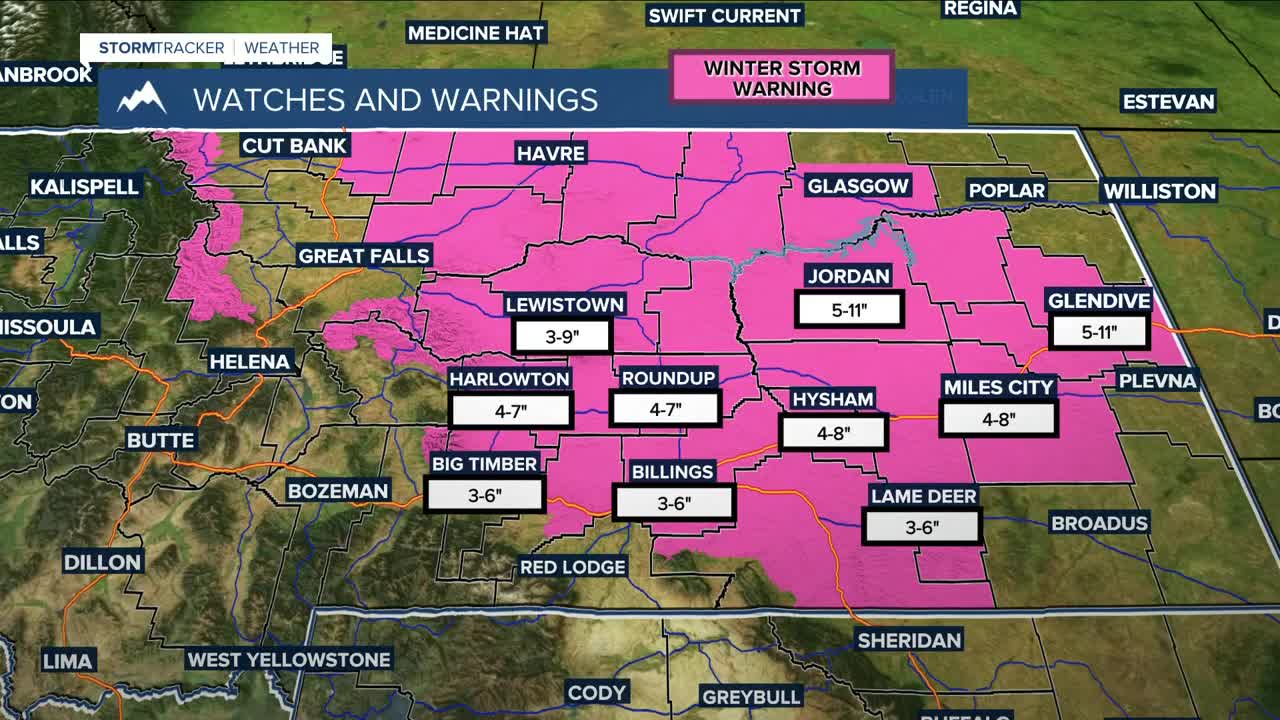 Heavy snow continues today, with the main band shifting north and east. This morning’s focus runs from Harlowton to Lodge Grass, then shifts this evening from Miles City to Ridgeway. Most lower elevations can expect 4–8 inches of additional snow, while 1–3 inches is more likely for Sheridan County WY, Powder River County, and southern Carter County MT. Northern Rosebud and Custer Counties have the best chance (40–60%) of reaching 6 inches or more. Lighter snow may drift back south and west late tonight into early Saturday, generally under an inch, before the system exits Saturday. Winter Storm Warnings and Winter Weather Advisories are in effect.