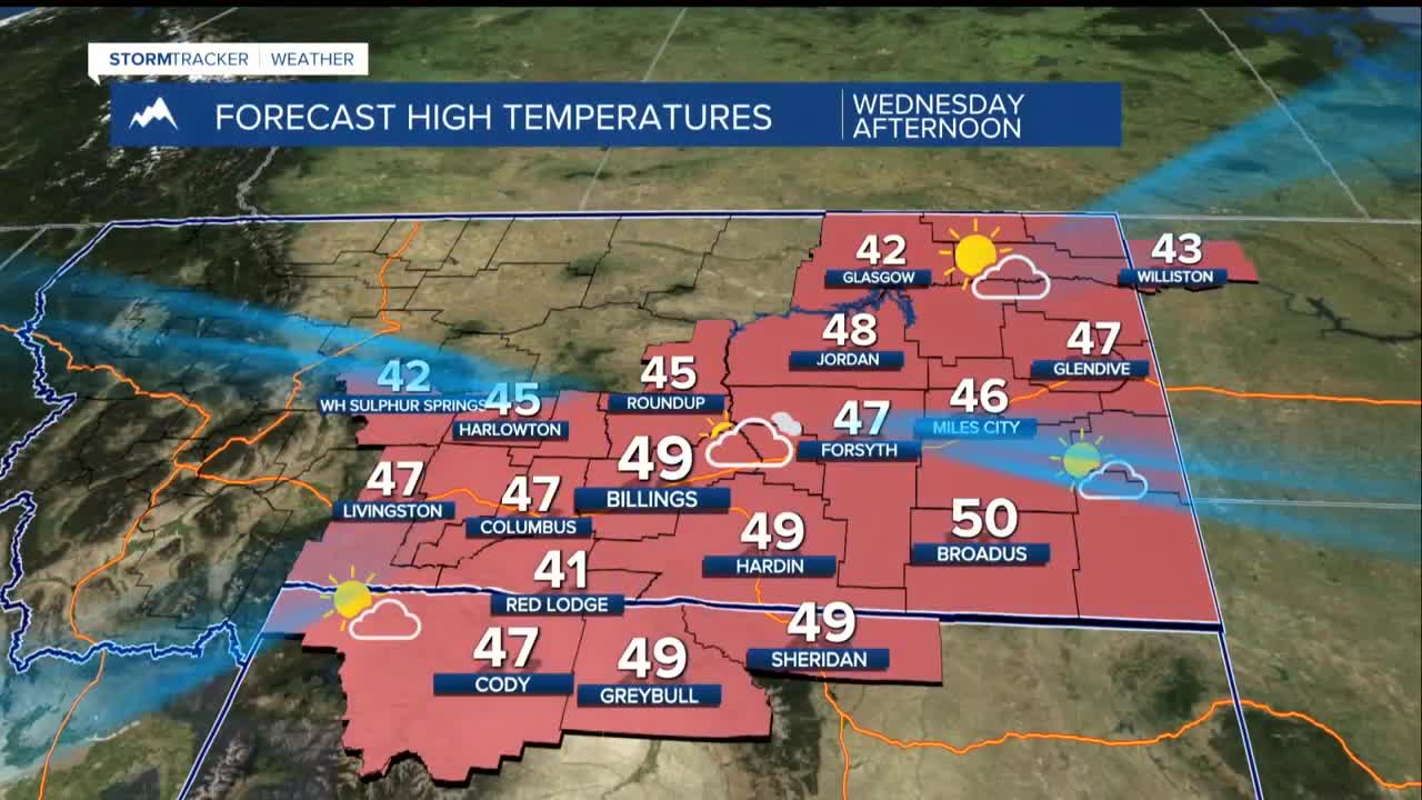 Tuesday night-Wednesday: A weather system from California bringing moisture to our mountains. The Beartooth, Absaroka, and Bighorn ranges could see light snowfall Wednesday, with the best chances in the higher elevations. Don't expect a major snow event with less than a 20% chance of getting more than 6 inches.