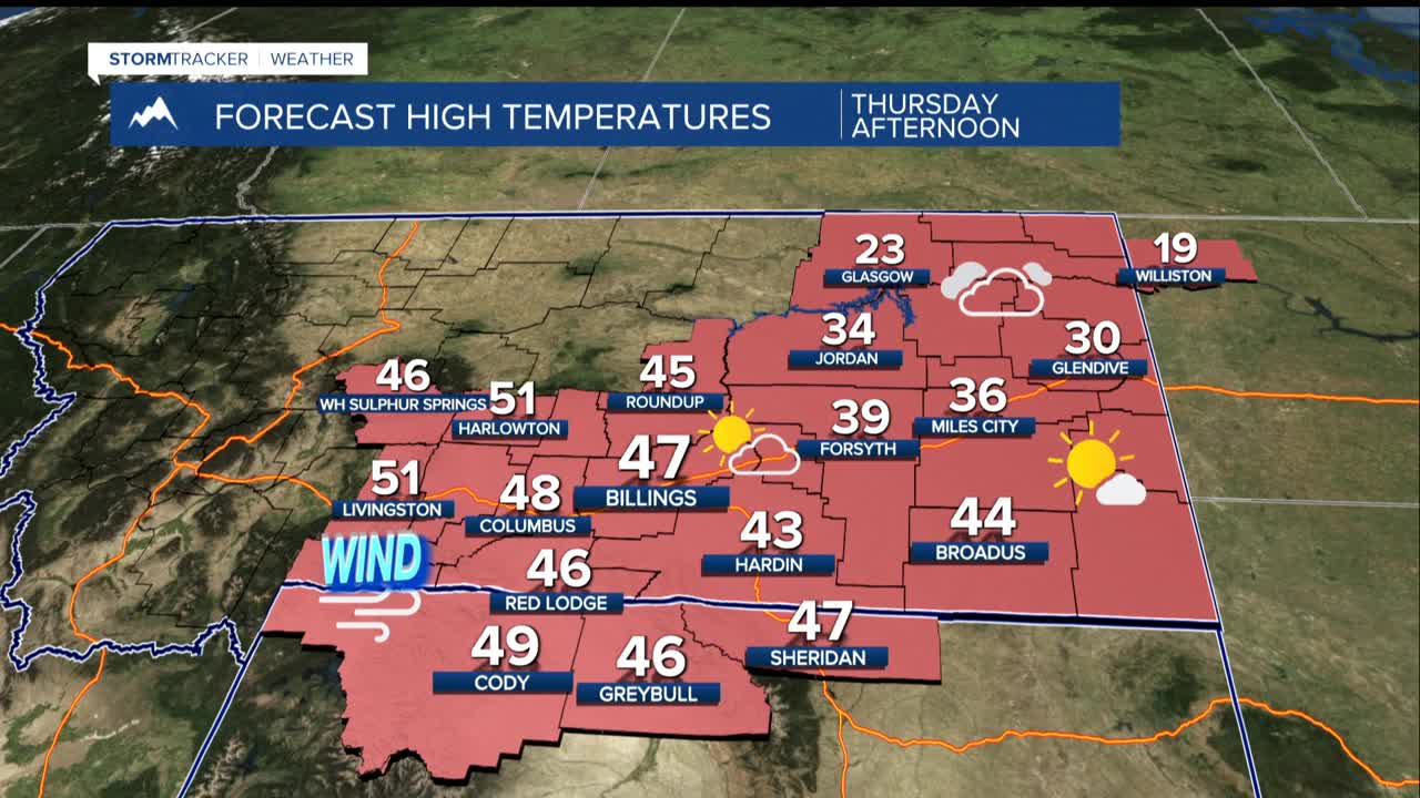 Strong winds will continue down the foothills west of Billings through Thursday morning. Top gust in Livingston was 62 mph and a 49 mph gust was recorded in Big Timber on Tuesday,