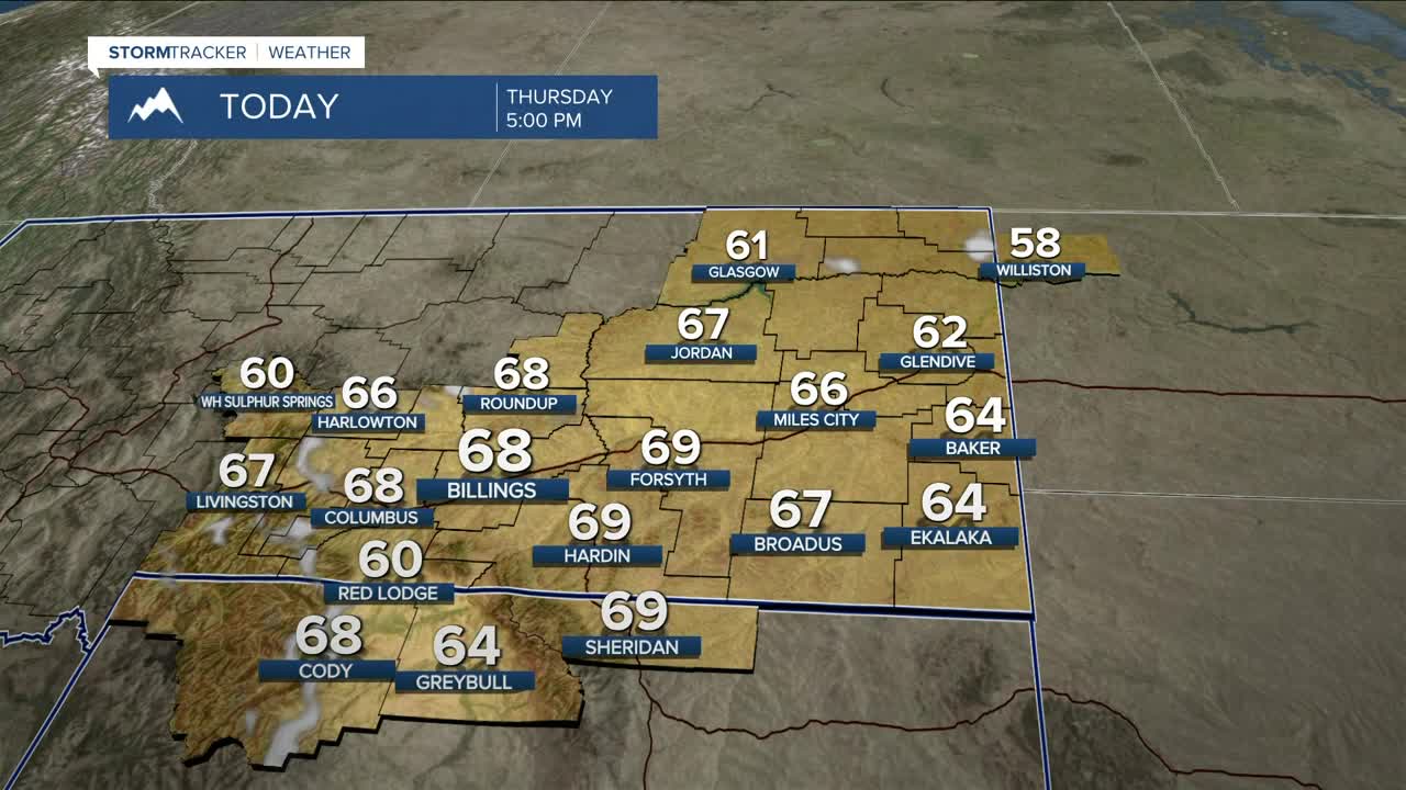 BILLINGS — High pressure will keep dry conditions in place through early Friday. It will also help warm daytime highs about 10–20 degrees above average for this time of year, with temperatures in the upper 50s to low 70s. A few locations including Billings and Miles City will have a chance to push near-record warmth on Thursday and possibly Friday.