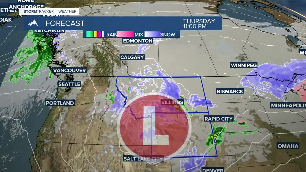 BILLINGS — Light freezing rain could impact areas east and southeast of Billings Wednesday morning. Watch out for very slick roads, especially bridges and overpasses. Reduced visibility will also be possible. Conditions improve during the day with precipitation tapering off and some clearing, but light snow showers will linger in the mountains into Thursday. Highs will be mainly in the 40s and 50s.