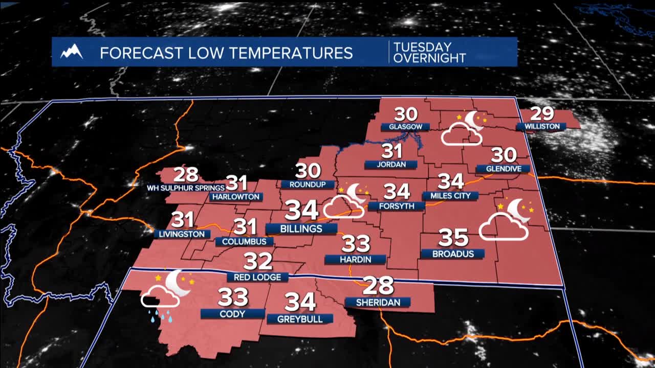 BILLINGS — TODAY THROUGH WEDNESDAY: Scattered showers and isolated weak thunderstorms pack a punch with gusty winds up to 50 mph and the potential for graupel and small hail. The main weather assault targets the afternoon and early evening hours, so plan accordingly if you have outdoor activities.