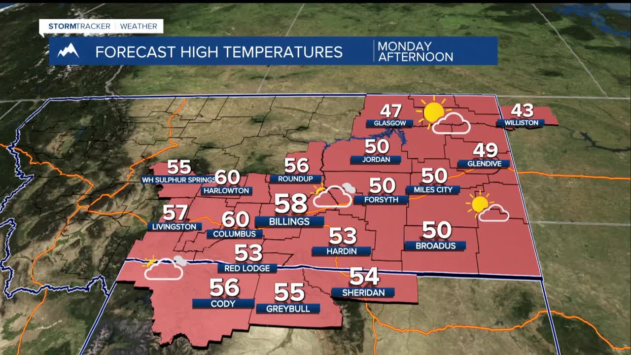 BILLINGS — A weather system moving through Monday will bring cooler temperatures and some chances for rain or snow, especially for the higher elevations. But both high and low temperatures remain above November averages all week.