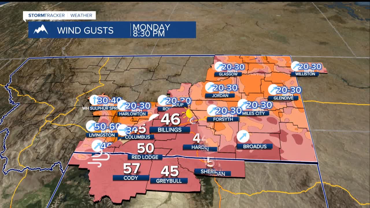 Gusts could reach 50-70 mph in many areas, with some of the mountain foothill locations possibly seeing gusts to 80 mph. Drivers should be especially cautious on US-191 between Big Timber and Judith Gap, where cross-winds could be particularly dangerous.