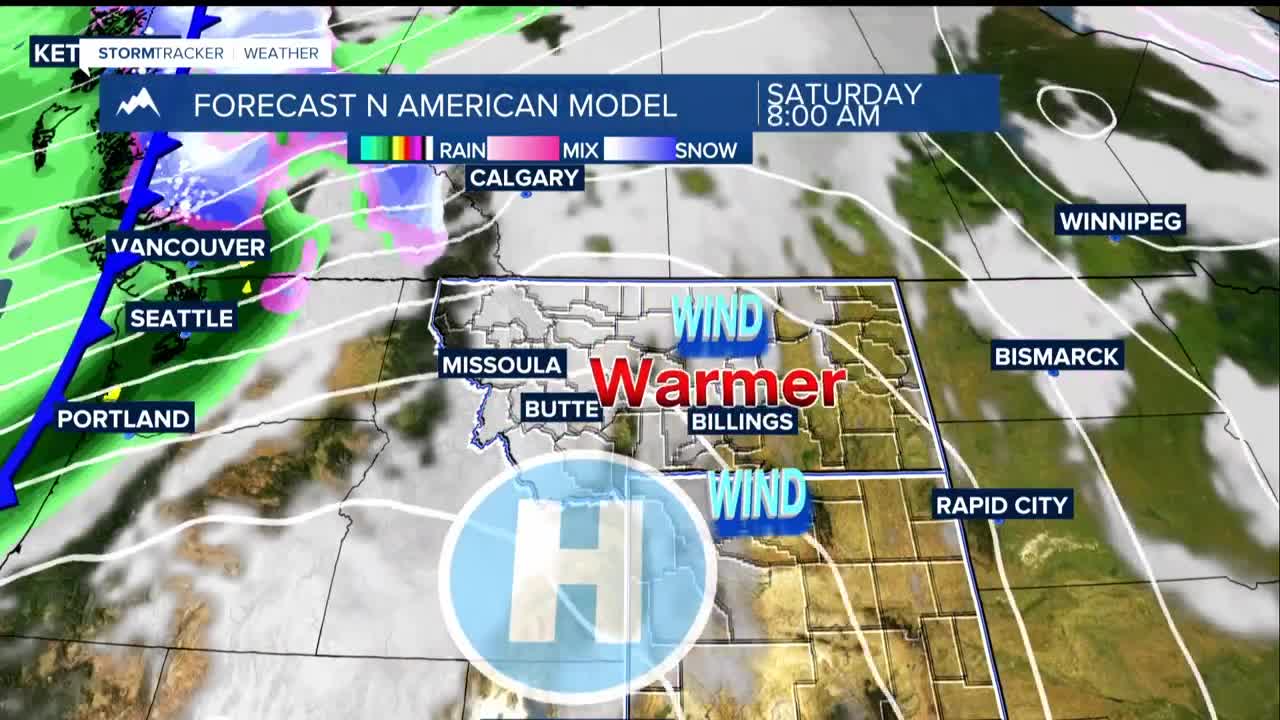 The ridge begins to flatten Saturday through Sunday as an atmospheric river begins pushing into the Pacific Northwest. This will allow for pressure gradients to tighten along the western foothills, once again favoring Livingston to Nye with possible 50 mph gusts.