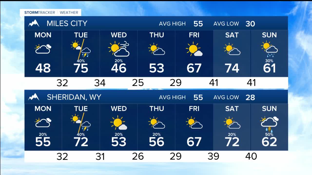 A wind shift sets up a subtle overnight drama around Sheridan and Livingston, where patchy fog could develop against the mountains. Highs will be mainly in the 50s with 40s in the eastern plains.