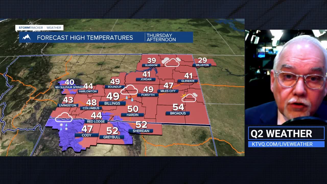 Travel impacts are possible on I-90 and US-212 into Friday morning, and a Winter Weather Advisory has been issued for the Pryors and Bighorns. US-14 through Burgess Junction will see impacts. Rainfall totals will be modest but welcome: 0.10–0.30" at lower elevations west of Rosebud (Forsyth) County (including Billings and Yellowstone County), and 0.50–0.80" over the mountains.