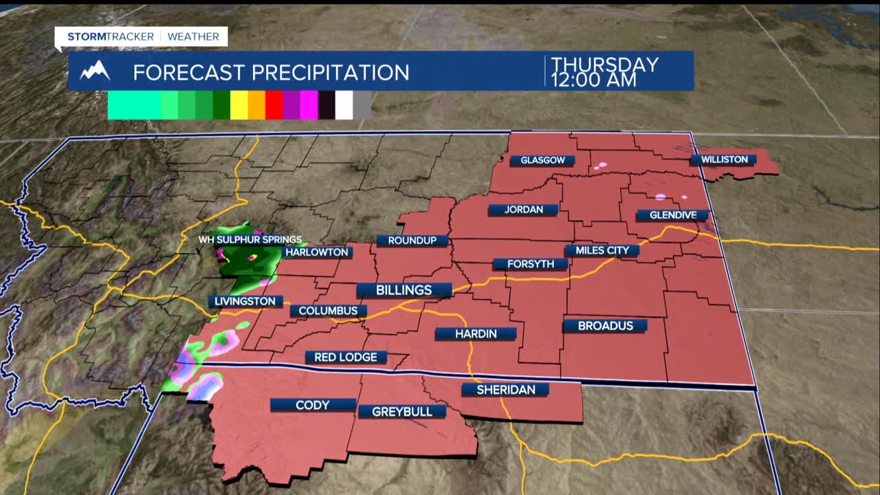 Through Friday, temperatures will soar well above normal for this time of year, with highs reaching the 40s and 50s. Christmas Day itself looks to stay warm and mostly dry across most of the region. A weak weather system may bring a slight chance of rain or snow to areas west of Rosebud County (Forsyth) that may include Yellowstone County (Billings) and surrounding counties.