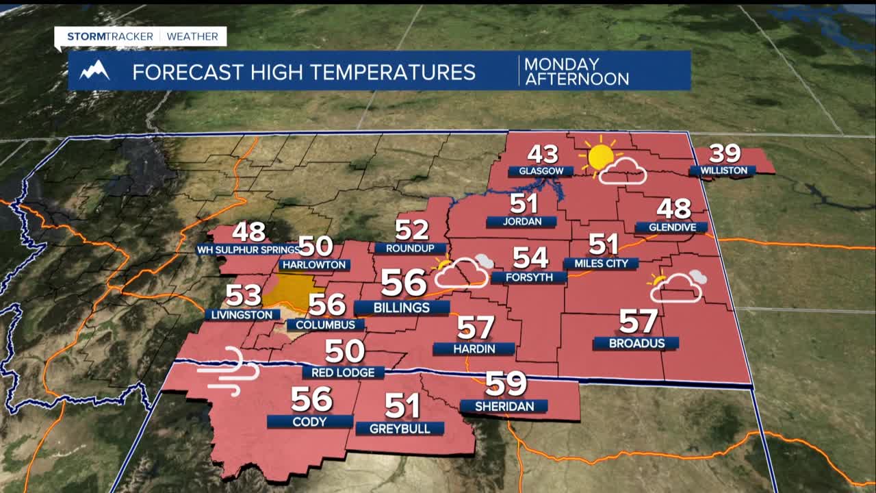 BILLINGS — SUNDAY NIGHT THROUGH TUESDAY: An active weather week kicks off tonight with strong winds hitting the western foothills. Livingston and Nye are in for a rough ride with gusty crosswinds starting Sunday night and lasting through Tuesday morning, with gusts reaching up to 60 mph during the strongest period Monday night into Tuesday morning.