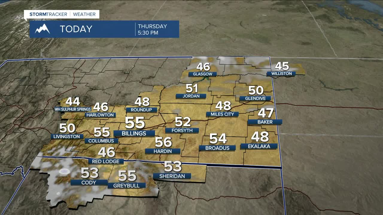 BILLINGS — We can expect mainly dry conditions and warmer-than-average temperatures through Monday, with highs ranging about 10–15 degrees above normal, in the mid-40s to mid-50s. Skies should be sunny to mostly sunny Thursday and Friday, with more clouds mixing in Saturday and Sunday.