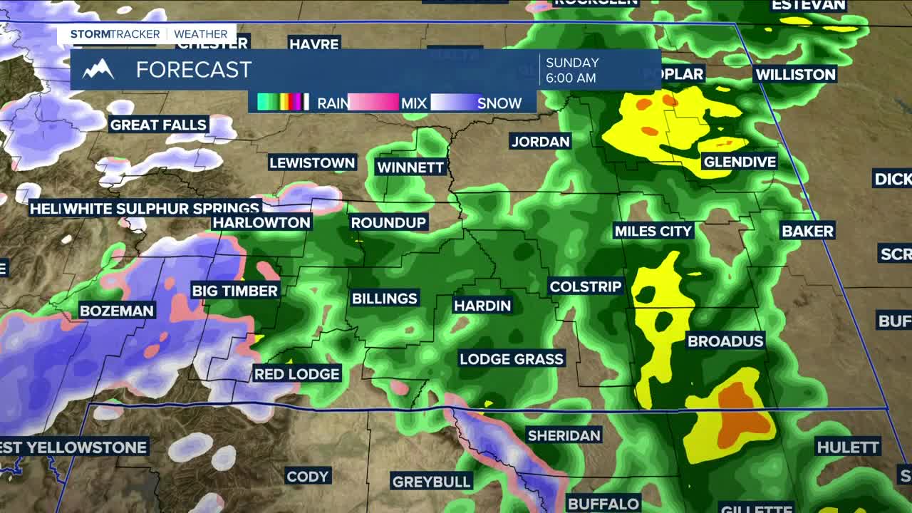 Saturday will remain warmer than average with highs in the mid-70s to low-80s ahead of a cooldown and wetter weather. An upper-level system will bring a good chance of rain by late Saturday afternoon (with a few weak thunderstorms possible) through Sunday night. Areas west of Rosebud County (including Billings) have a very good shot at least half an inch of rain, with Billings possibly topping one inch. Locations east of that line could receive over a quarter of an inch.