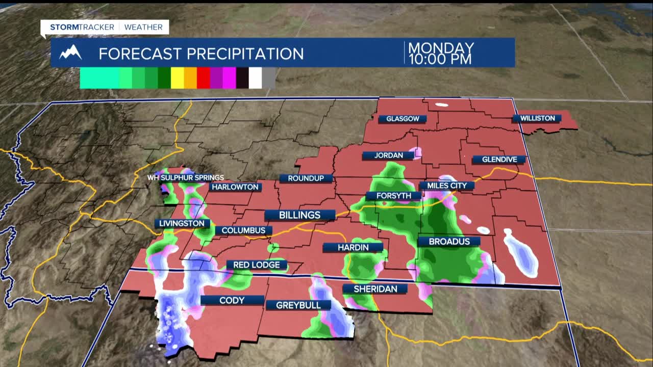BILLINGS — TONIGHT THROUGH TUESDAY: The wind is back. A warm front sweeps across the region tonight, bringing a 30–50% chance of mostly rain, though locations from northern Rosebud to Carter counties could see a wintry mix, including a brief chance for freezing rain. The good news: accumulations are expected to stay minor, well under a tenth of an inch.